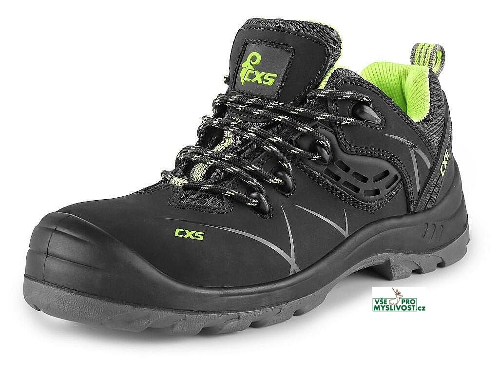 Bezpečnostní polobotka, kožená, s plastovou špicí a planžetou Dyna-Flex®, reflexní doplňky. Materiál: svršek z 1,6 - 1,8 mm štípenkové nubukové kůže (z jednoho dílu), vnější TPU ochrana paty, bez kovových součástí, podšívka z prodyšné oděru odolné textilie, podešev: PU-PU olejivzdorná, antistatická, protiskluzová, odolná proti propichu.