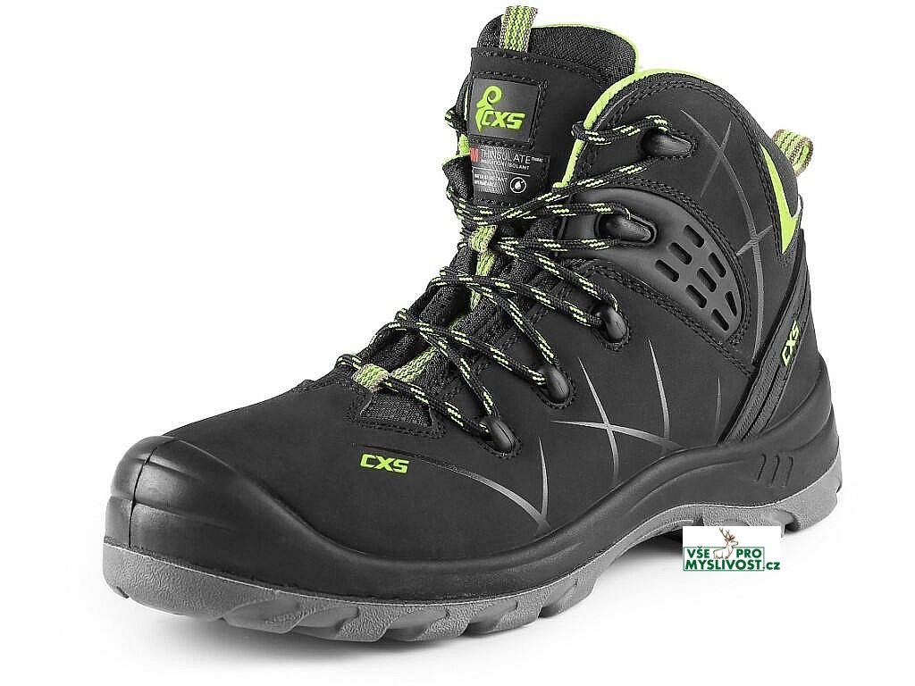 Kotníková bezpečnostní obuv zateplená vložkou Thinsulate (gramáž 200 g), plastová špice a planžeta Dyna-Flex®, reflexní doplňky. Materiál: svršek z 1,6 - 1,8 mm hydrofobní štípenkové nubukové kůže (z jednoho dílu), vnější TPU ochrana paty, bez kovových součástí, podšívka z prodyšné oděru odolné textilie, podešev: PU-PU olejivzdorná, antistatická, protiskluzová, odolná proti propichu.