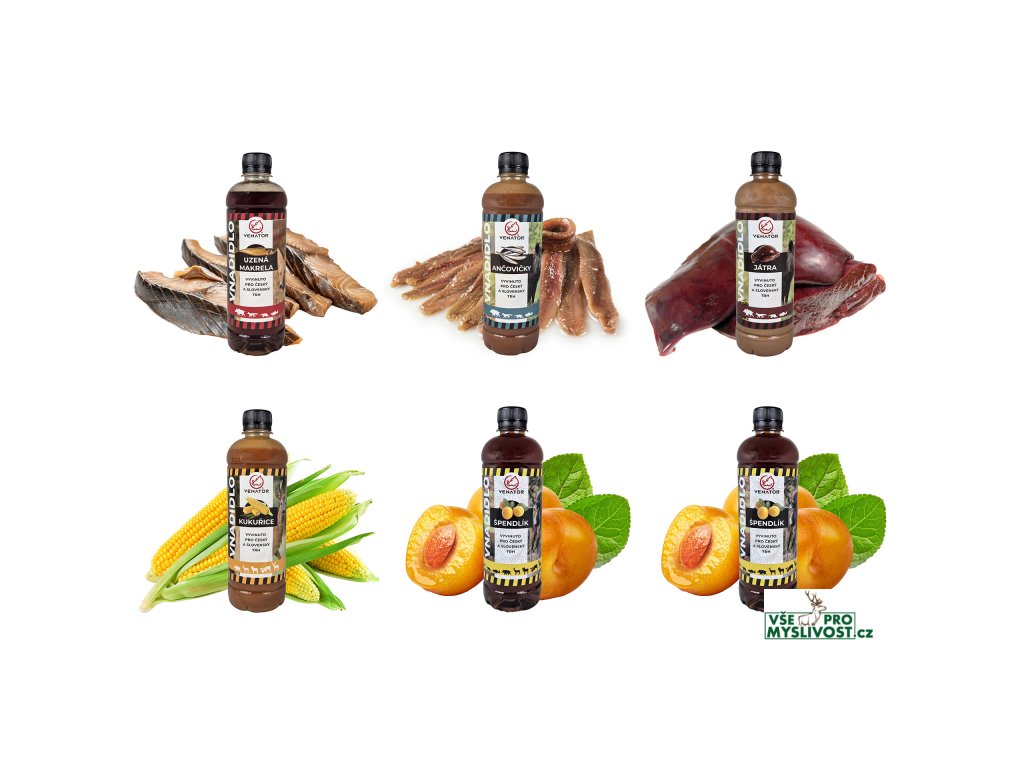 Venator dárková sada vnadidel 6x 0,5l - Makrela, Kukuřice, 2x Špendlík, Játra, Ančovička