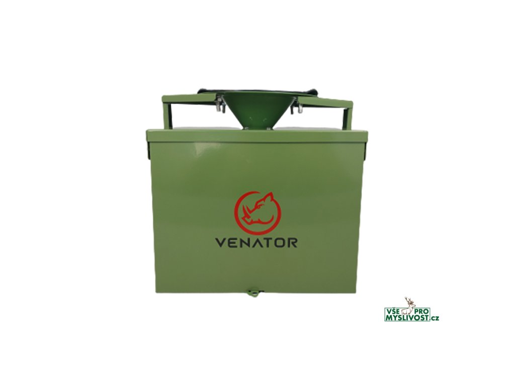 Pohodlně lze na něj připevnit široké spektrum různých barelů či sudů na zásobu krmiva. Tělo krmeného automatu Venator je celokovové. Přístroj je stavěn k venkovnímu použití, takže je tělo vodotěsné.