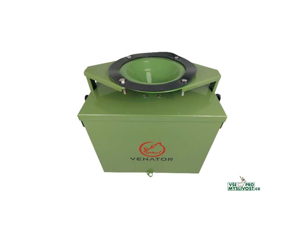 Kovový krmný automat značky Venator s dvěma motory s vysokým výkonem.