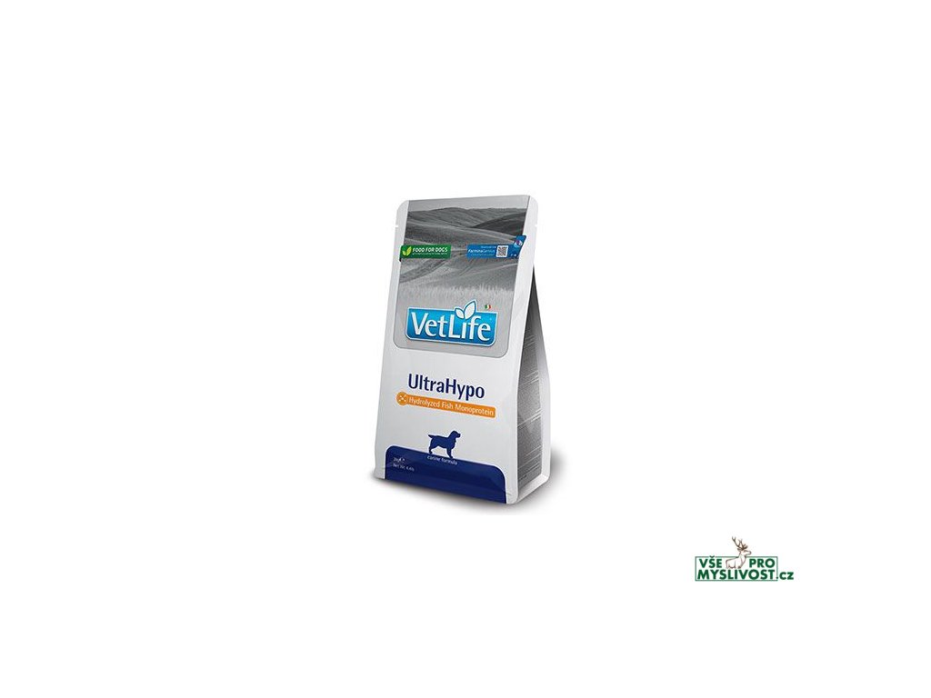UltraHypoFarmina Vet Life UltraHypo je kompletní dietetické krmivo pro psy určené pro snížení výskytu potravinových alergií a nesnášenlivostí. Používá se i jako eliminační dieta. Podporuje také funkci kůže v případě kožních poruch a nadměrné ztráty srsti.