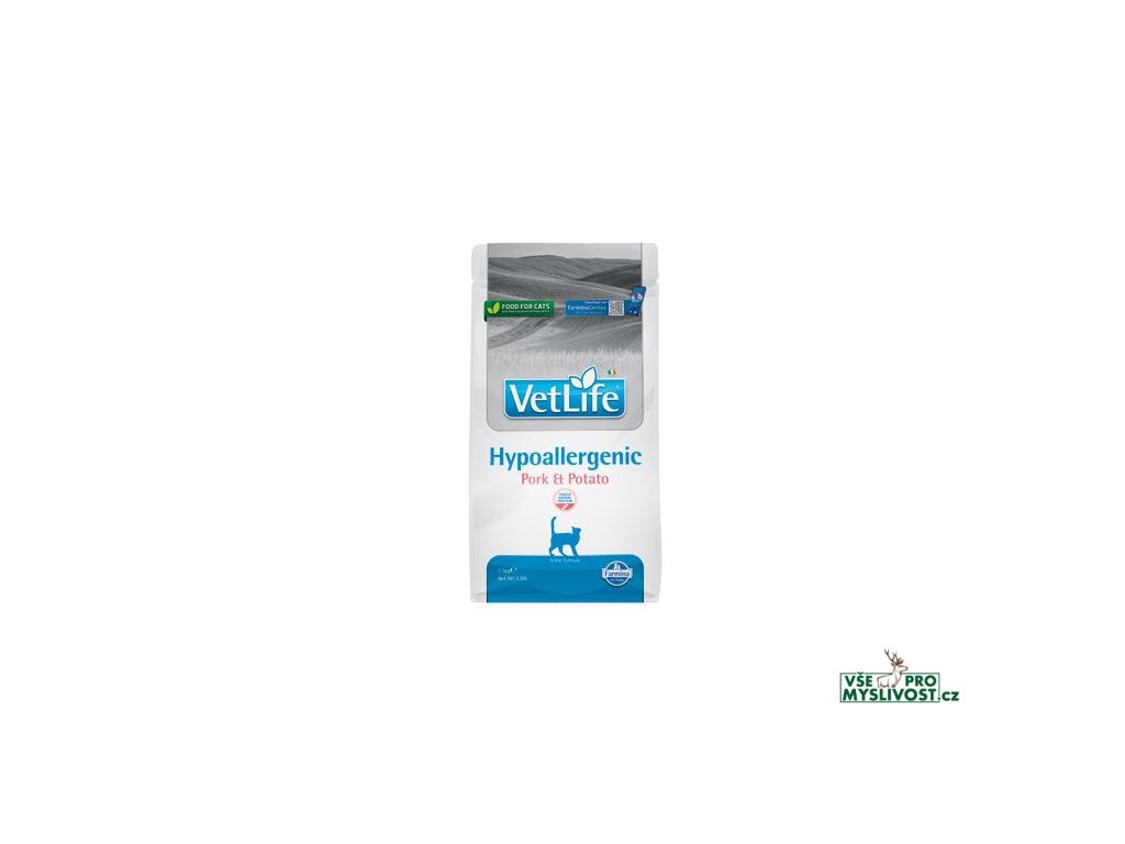 Farmina Vet Life Hypoallergenic Pork & Potato je kompletní dietetické krmivo pro kočky určené pro snížení výskytu potravinových alergií a nesnášenlivostí. Používá se také pro podporu funkci kůže v případě kožních poruch a nadměrné ztráty srsti.