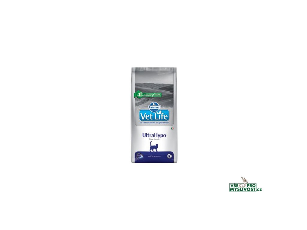 UltraHypoFarmina Vet Life Ultrahypo je kompletní krmivo pro kočky určené pro snížení výskytu potravinových alergií a nesnášenlivostí. Používá se i jako eliminační dieta. Podporuje také funkci kůže v případě kožních poruch a nadměrné ztráty srsti.