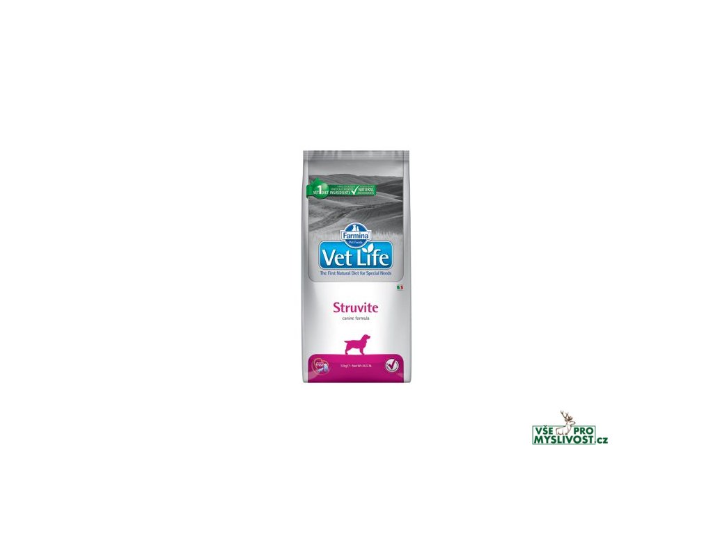 StruviteFarmina Vet Life Struvite je kompletní dietetické krmivo pro psy určené pro rozpouštění a snížení recidivy tvorby struvitových kamenů.
