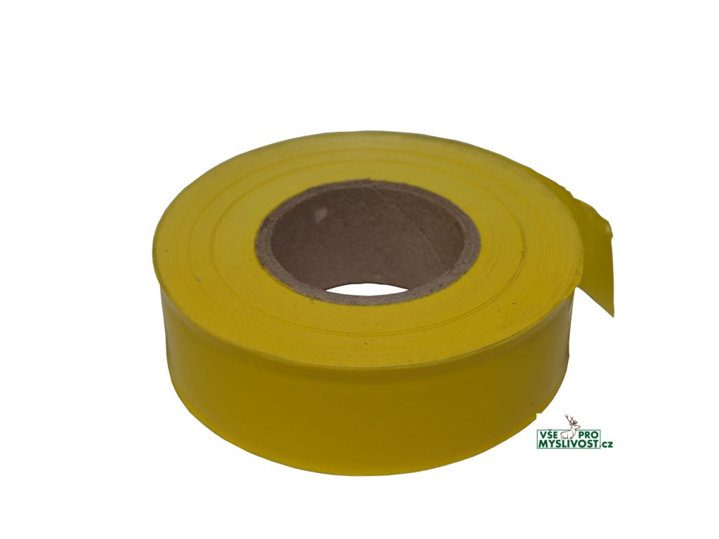 Plastová vyznačovací žlutá páska PE široká 25 mm o délce 100 m. Páska je vyrobena z ekologického plastu (PE polyethylen) a po několika letech se působením světla rozkládá, proto je vhodná pouze pro krátkodobé značení.