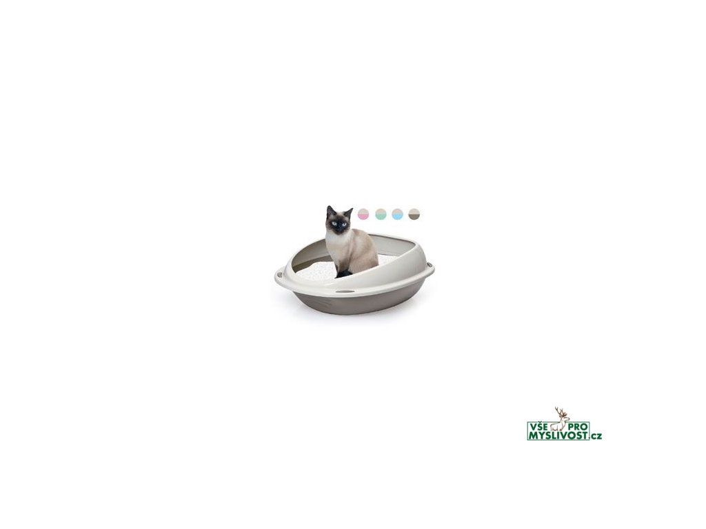 Otevřená toaleta pro kočky s vysokým okrajem.- moderní design