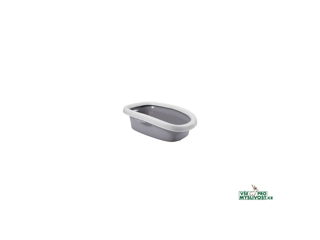 Prostorná otevřená toaleta pro kočky se zesíleným okrajem, který zabraňuje vysypávání podestýlky.