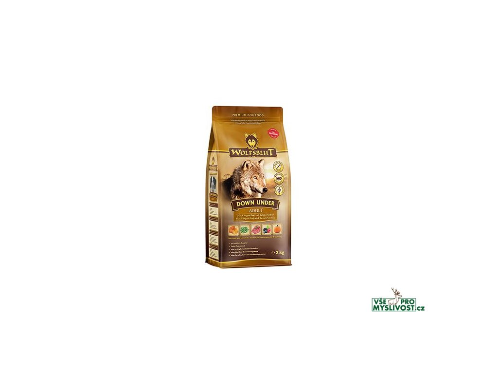 Vlci loví svou kořist od Skalistých hor Severní Ameriky, arktické tundry, hor a lesů Evropy až po pouště a stepi střední Asie. To jim dodává maso a vnitřnosti bohaté na živiny, ale také zeleninu, ovoce, bobule, kořeny a bylinky z obsahu žaludku kořisti. Obilí zde není zahrnuto. Vlk tak přijímá potřebné vitamíny, minerály, stopové prvky, enzymy a druhotné rostlinné látky. Vzhledem k tomu, že vlk je předkem všech psů, naše suché krmivo pro psy Wolfsblut je založeno na přirozených stravovacích návycích vlka. Obsahuje hodně masa nebo ryb v kombinaci se superpotravinami, které obsahují hodnotné ingredience – stejně jako v přírodě, bez obilovin. Náš výběr výjimečných druhů masa a superpotravin bohatých na živiny vychází z vlčích biotopů a jejich pestré stravy. Wolfsblut nabízí každému psovi druhově vhodnou a originální stravu a díky rozmanitosti odrůd si každý najde něco, co snese. Receptura Down Under Adult kombinuje krmivo pro vlky s nejnovějšími vědeckými poznatky o správné výživě psů.