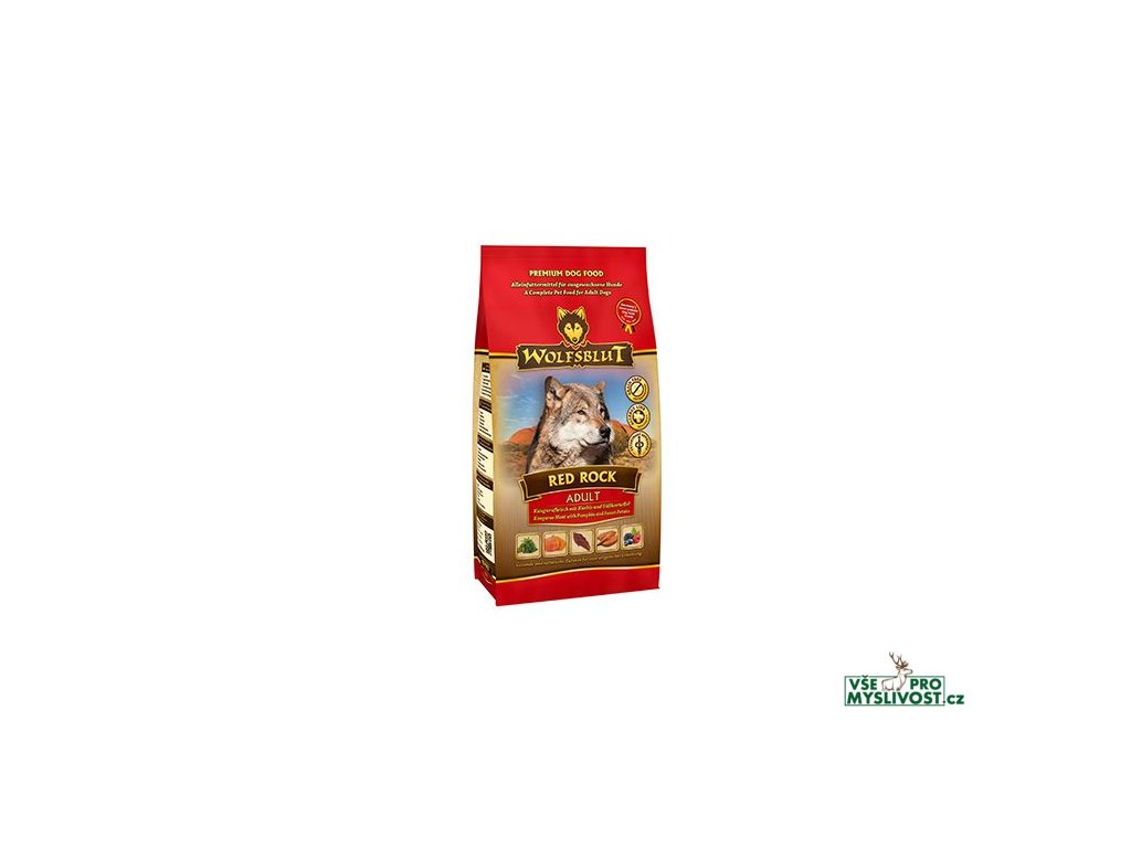 Vlci loví svou kořist od Skalistých hor Severní Ameriky, arktické tundry, hor a lesů Evropy až po pouště a stepi střední Asie. To jim dodává maso a vnitřnosti bohaté na živiny, ale také zeleninu, ovoce, bobule, kořeny a bylinky z obsahu žaludku kořisti. Obilí zde není zahrnuto. Vlk tak přijímá potřebné vitamíny, minerály, stopové prvky, enzymy a druhotné rostlinné látky. Vzhledem k tomu, že vlk je předkem všech psů, naše suché krmivo pro psy Wolfsblut je založeno na přirozených stravovacích návycích vlka. Obsahuje hodně masa nebo ryb v kombinaci se superpotravinami, které obsahují hodnotné ingredience – stejně jako v přírodě, bez obilovin. Náš výběr výjimečných druhů masa a superpotravin bohatých na živiny vychází z vlčích biotopů a jejich pestré stravy. Wolfsblut nabízí každému psovi druhově vhodnou a originální stravu a díky rozmanitosti odrůd si každý najde něco, co snese. Receptura na suché krmivo RED ROCK ADULT kombinuje výživu vlků s nejnovějšími vědeckými poznatky o správné výživě psů.