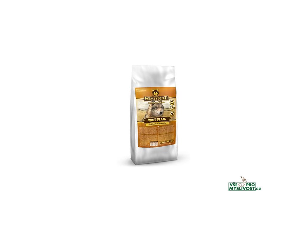 Vlci loví svou kořist ve Skalistých horách Severní Ameriky, arktické tundře, v horách a lesích Evropy a dokonce i v pouštích a stepích střední Asie. To jim poskytuje maso a vnitřnosti bohaté na živiny, ale také zeleninu, ovoce, bobule, kořeny a bylinky prostřednictvím obsahu žaludku kořisti. Obilí zde není zahrnuto. Vlk tak dostává potřebné vitamíny, minerály, stopové prvky, enzymy a druhotné rostlinné látky. Vzhledem k tomu, že vlk je předkem všech psů, naše suché krmivo pro psy Wolfsblut je založeno na přirozených stravovacích návycích vlka. Obsahuje hodně masa nebo ryb v kombinaci se superpotravinami, které obsahují hodnotné ingredience – stejně jako v přírodě, bez obilovin. Náš výběr výjimečných mas a superpotravin bohatých na živiny je založen na vlčím prostředí a jeho rozmanité stravě. Wolfsblut nabízí každému psovi druhově vhodnou a přirozenou stravu a díky rozmanitosti odrůd si každý něco toleruje. Receptura suchého krmiva WIDE PLAIN LARGE BREED kombinuje stravu vlka s nejnovějšími vědeckými poznatky o správné výživě psů.