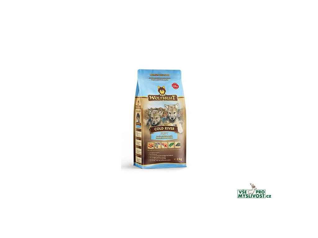 Vlci loví svou kořist od Skalistých hor Severní Ameriky, arktické tundry, hor a lesů Evropy až po pouště a stepi střední Asie. To jim dodává maso a vnitřnosti bohaté na živiny, ale také zeleninu, ovoce, bobule, kořeny a bylinky z obsahu žaludku kořisti. Obilí zde není zahrnuto. Vlk tak přijímá potřebné vitamíny, minerály, stopové prvky, enzymy a druhotné rostlinné látky. Vzhledem k tomu, že vlk je předkem všech psů, naše suché krmivo pro psy Wolfsblut je založeno na přirozených stravovacích návycích vlka. Obsahuje hodně masa nebo ryb v kombinaci se superpotravinami, které obsahují hodnotné ingredience – stejně jako v přírodě, bez obilovin. Náš výběr výjimečných druhů masa a superpotravin bohatých na živiny vychází z vlčích biotopů a jejich pestré stravy. Wolfsblut nabízí každému psovi druhově vhodnou a originální stravu a díky rozmanitosti odrůd si každý najde něco, co snese. Receptura suchého krmiva COLD RIVER PUPPY kombinuje výživu vlků s nejnovějšími vědeckými poznatky o správné výživě psů.