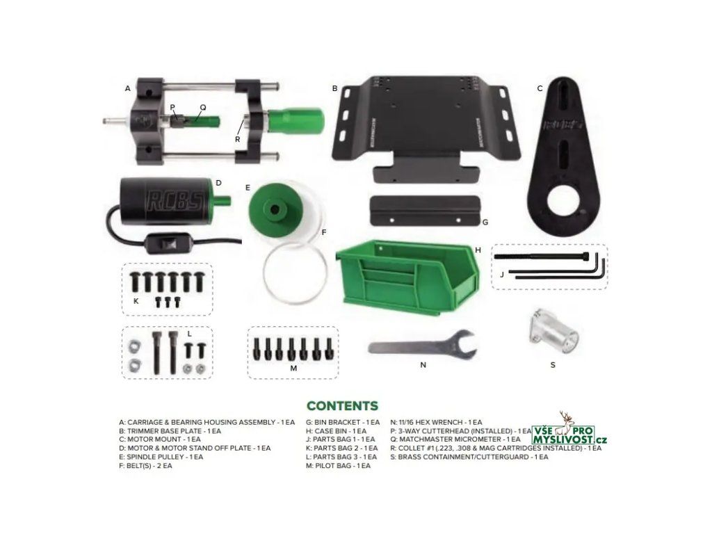 - kleštinu RCBS MatchMaster Trimmer Collet #1 pro .223 Rem, .308 Win, 6.5 Creedmoor, .300 Win Mag a další ráže